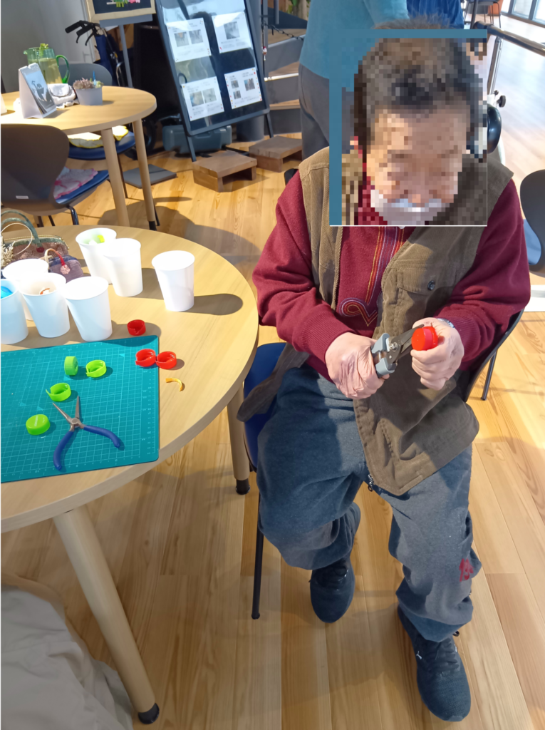 ふたを切る作業は男性利用者さんたちにお願いしました。