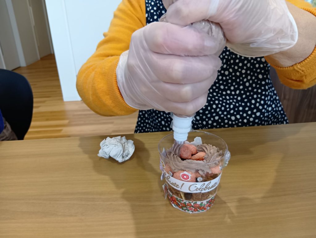 2月13日に管理栄養士と一緒にミニパフェ作りのイベントを開催しました。